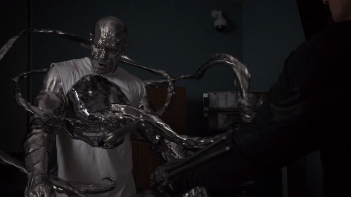 As Creel turned away from Coulson and went to attack Lincoln again, May ambushed Creel and struck him in the head with a metal pipe, tricking him into transforming his body into metal. Now metallic, Creel was then electrocuted by Lincoln, knocking him to the ground. Lincoln kept up his electrical attack, overheating Creel's metallic body almost to the point of death, but stopped on Coulson's order. As Talbot was then freed, he rushed over and informed Coulson that Creel was his bodyguard, picking him up and standing by his side. With the conflict over, Creel was taken into the Playground where he was placed inside a Containment Module while the S.H.I.E.L.D. team attempted to analyze and protect themselves from his powers. Creel was visited by Leo Fitz and Jemma Simmons, the latter of which then questioned him about exactly how he obtained all of his absorption powers. Creel revealed to Simmons that he gained his powers from an experiment but would only give short answers as Simmons had asked him about what it felt to touch an Obelisk and how he survived the experience, with Creel noting that it had been extremely painful.