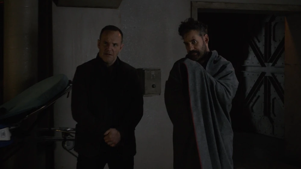 As Talbot investigated, he discovered Coulson had been punched directly into the chest by one of the Sleeper Mechs, stopping his heart as Coulson's wound from being killed by Loki had become infected. Talbot then begged Creel to do something and, despite still hearing the voice of Hall in his head, Creel managed to absorb the metal and electricity from one of the fallen mechs and then used that to restart Coulson's heartbeat, much to everybody's great relief. Talbot jokingly noted that Coulson died more times than anyone he had ever met before acknowledging Creel deserved the praise before they helped Coulson back to his feet ready to continue their escape.