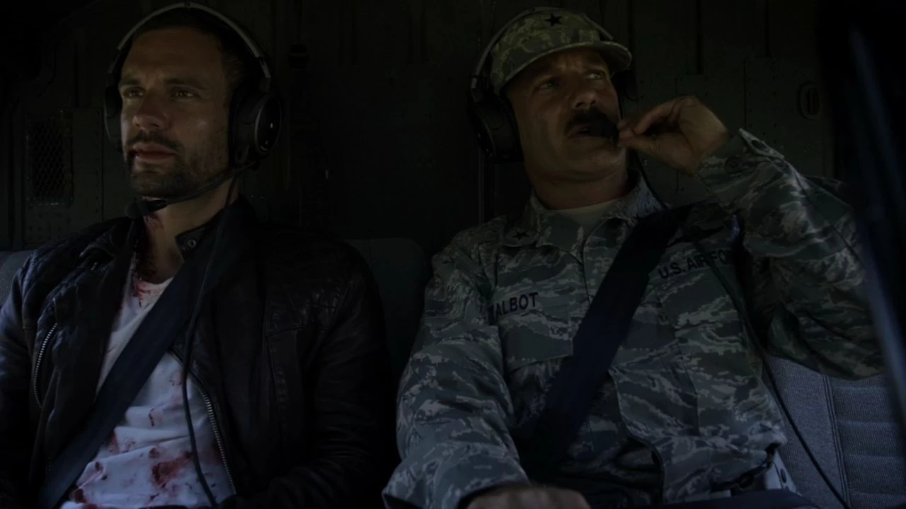 As Talbot woke up inside his car, he immediately called in the military to pick him up, using his passcodes to get past security systems. He was not aware, however, that Coulson had tricked him into revealing the location and codes for the storage warehouse, so they could get inside. Coulson was forced to use a voice-altering software to mimic Talbot's voice when the guard at the warehouse gate had refused to allow the undercover team Coulson sent inside of the warehouse.