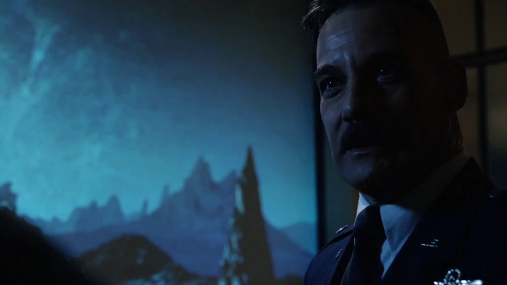 Talbot then began wandering all around the control room, confidently commenting taking over an alien spaceship was not bad for a day's work, while Coulson had admitted to being impressed although he claimed that forcing Qovas to kneel may have been a little much. Talbot, however, had become annoyed over this comment and demanded that Coulson not contradict him, telling him that in a war they had needed to assert their dominance. Coulson then suggested they start thinking about the bigger picture as Talbot explained that his own intention was to save the entire world.