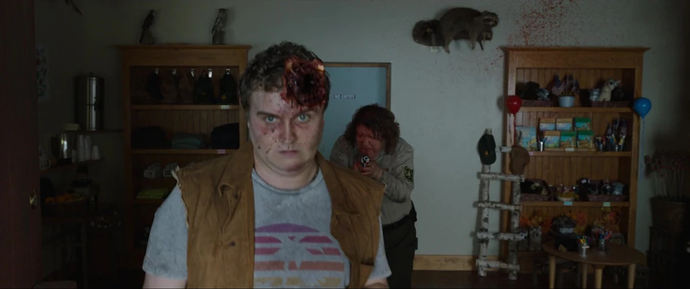 Ranger Liz arrives back at the station following her encounter with the Cocaine Bear. There, she finds Ponytail and Vest in the process of robbing the place, but their attention turns towards a thudding at the door. Liz expects it is the bear, though she never explicitly says as much. Ponytail and Vest meanwhile believe that Daveed has come back to kill them. Liz tells Ponytail to stand by the door and open it when she gives the word. After readying her gun, she tells Ponytail to open the door. Ponytail does so and is surprised to see a black bear sitting on the porch. Having psyched herself up for this situation, Liz reacts by pulling the trigger on her gun, accidentally blasting a hole through Ponytail's head while failing to hit the bear.